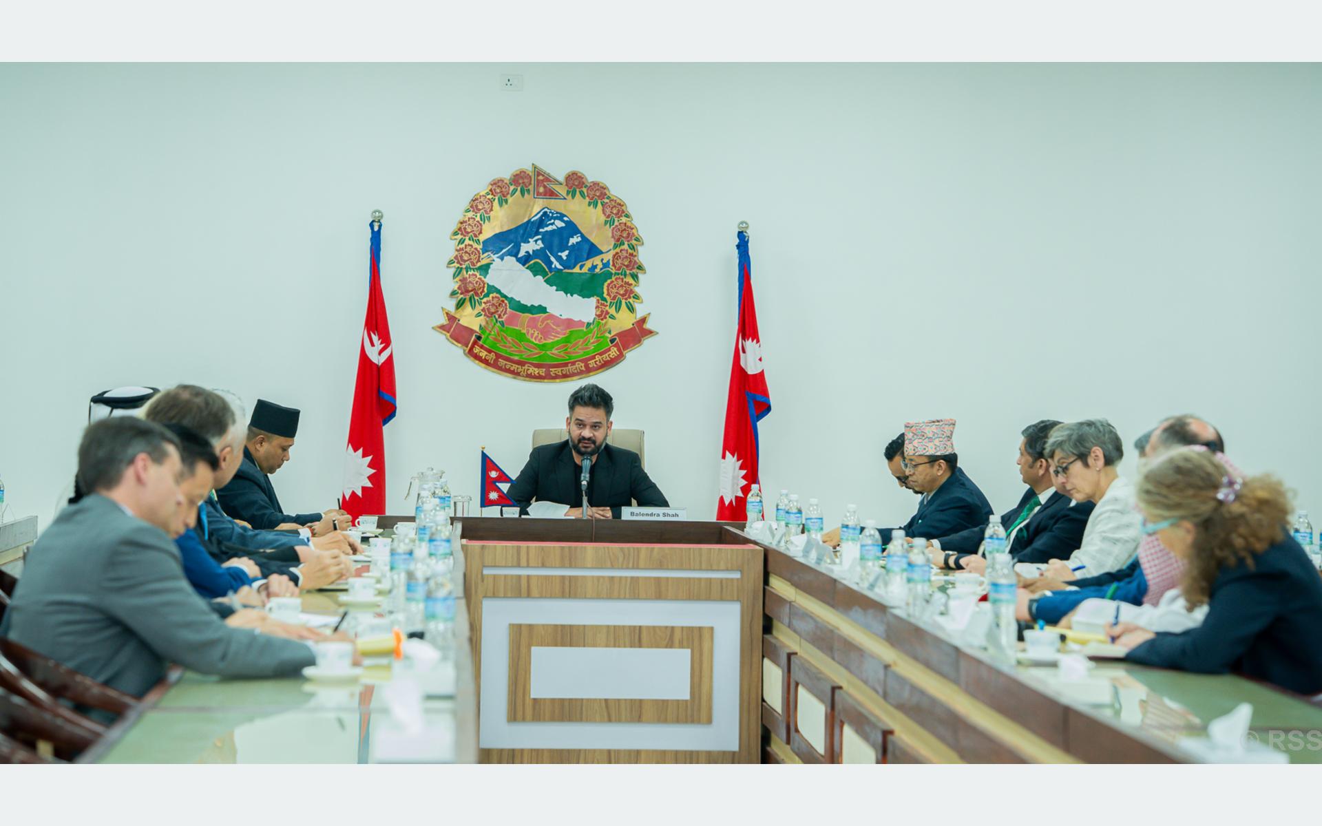 प्रधानमन्त्री शाहसँग नेपालस्थित विभिन्न देशका राजदूत तथा कूटनीतिक नियोग प्रमुखहरूद्वारा सामूहिक शिष्टाचार भेट