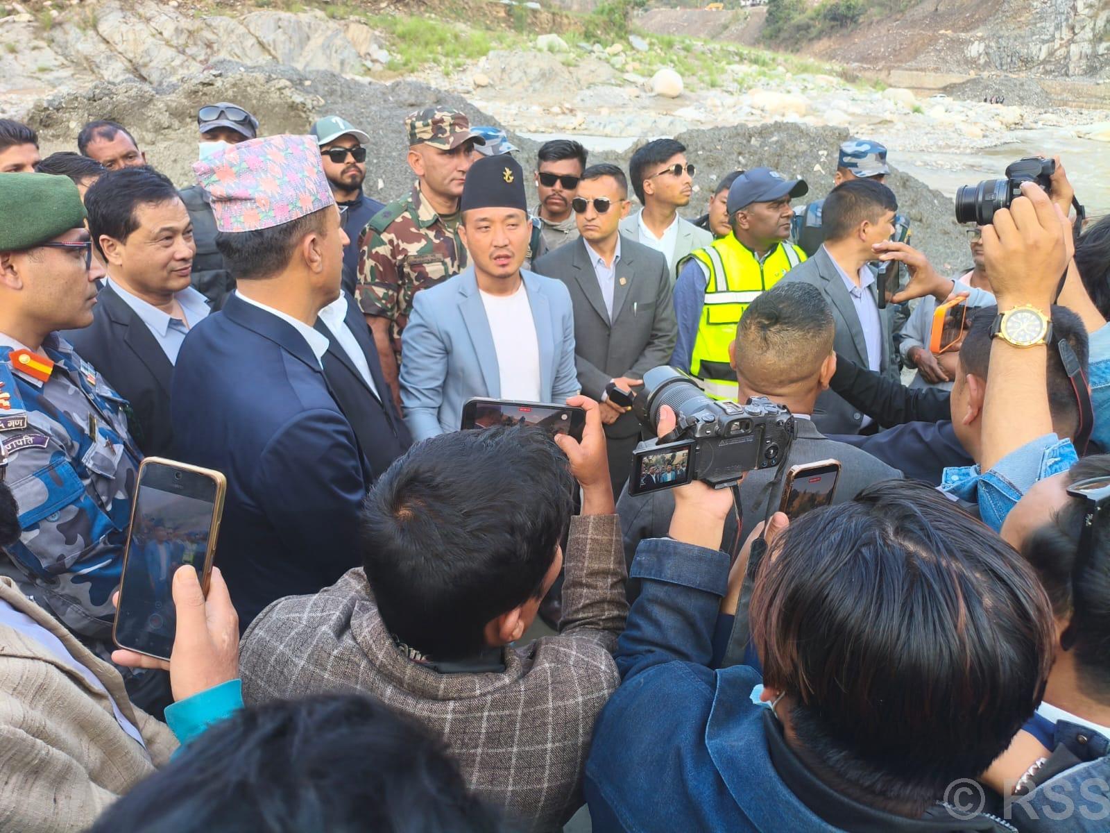गृहमन्त्री गुरुङद्वारा क्षतिग्रस्त बिपी राजमार्गको अवलोकन, विपत्तिमा ‘हेलीबाट’ उद्धार गर्न निर्देशन