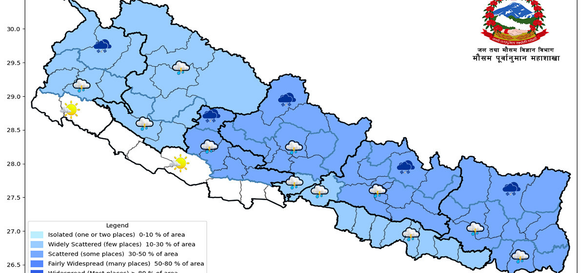 मौसममा पश्चिमी प्रणालीको आंशिक प्रभाव, केही स्थानमा वर्षा र हिमपातको सम्भावना