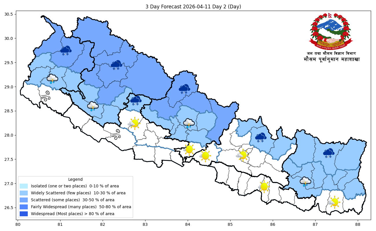 पश्चिमी वायुको प्रभावले केही स्थानमा वर्षा र हिमपातको सम्भावना